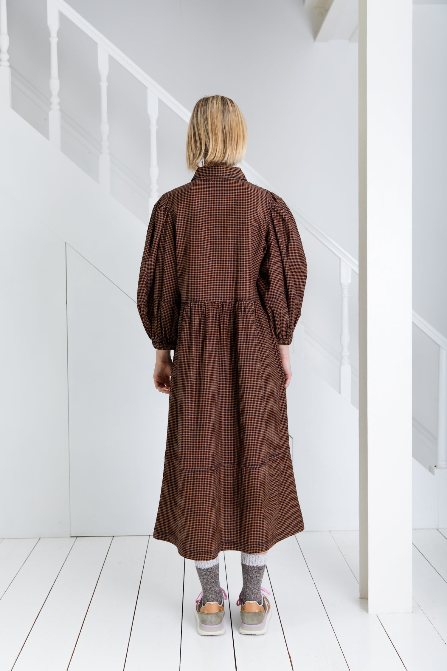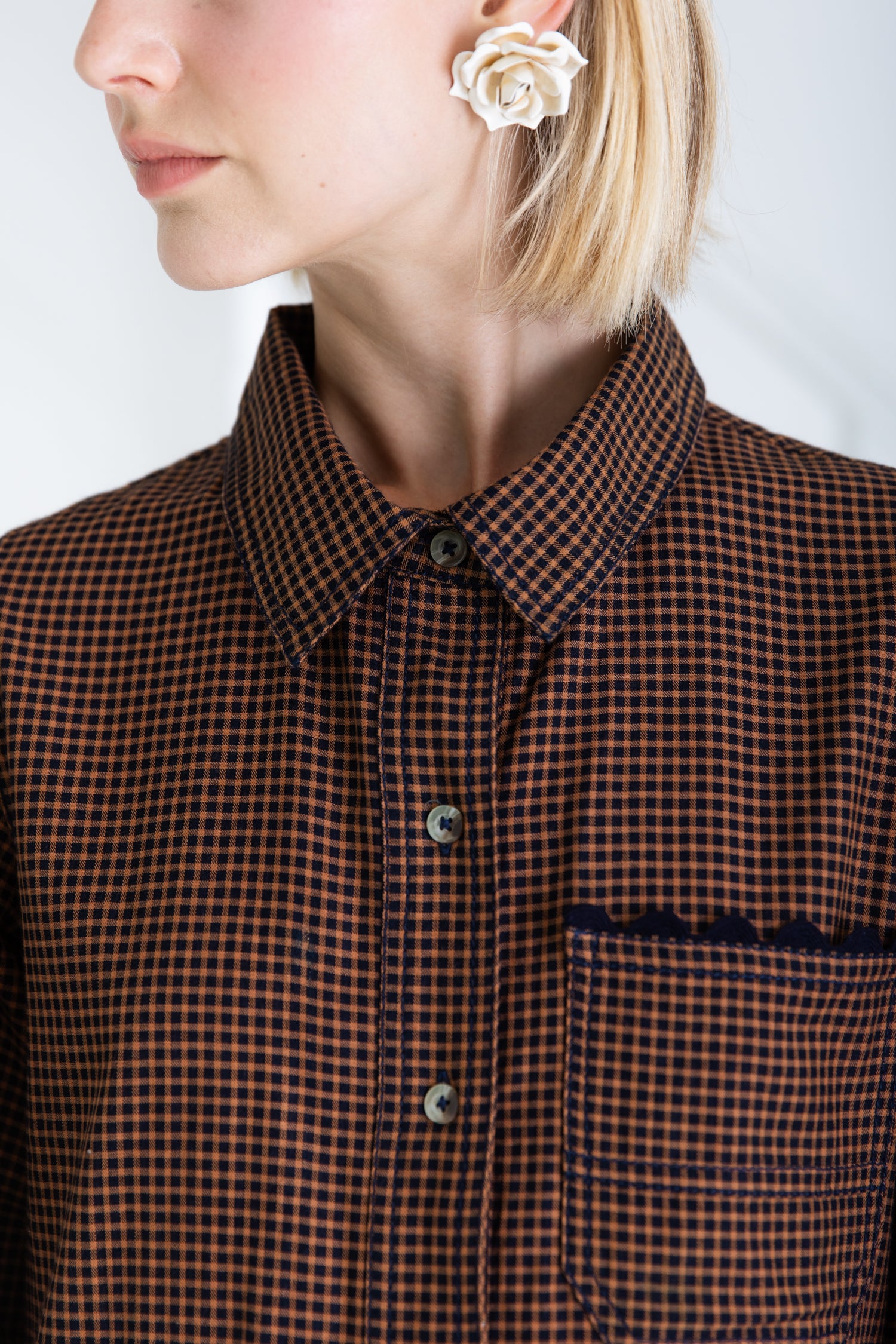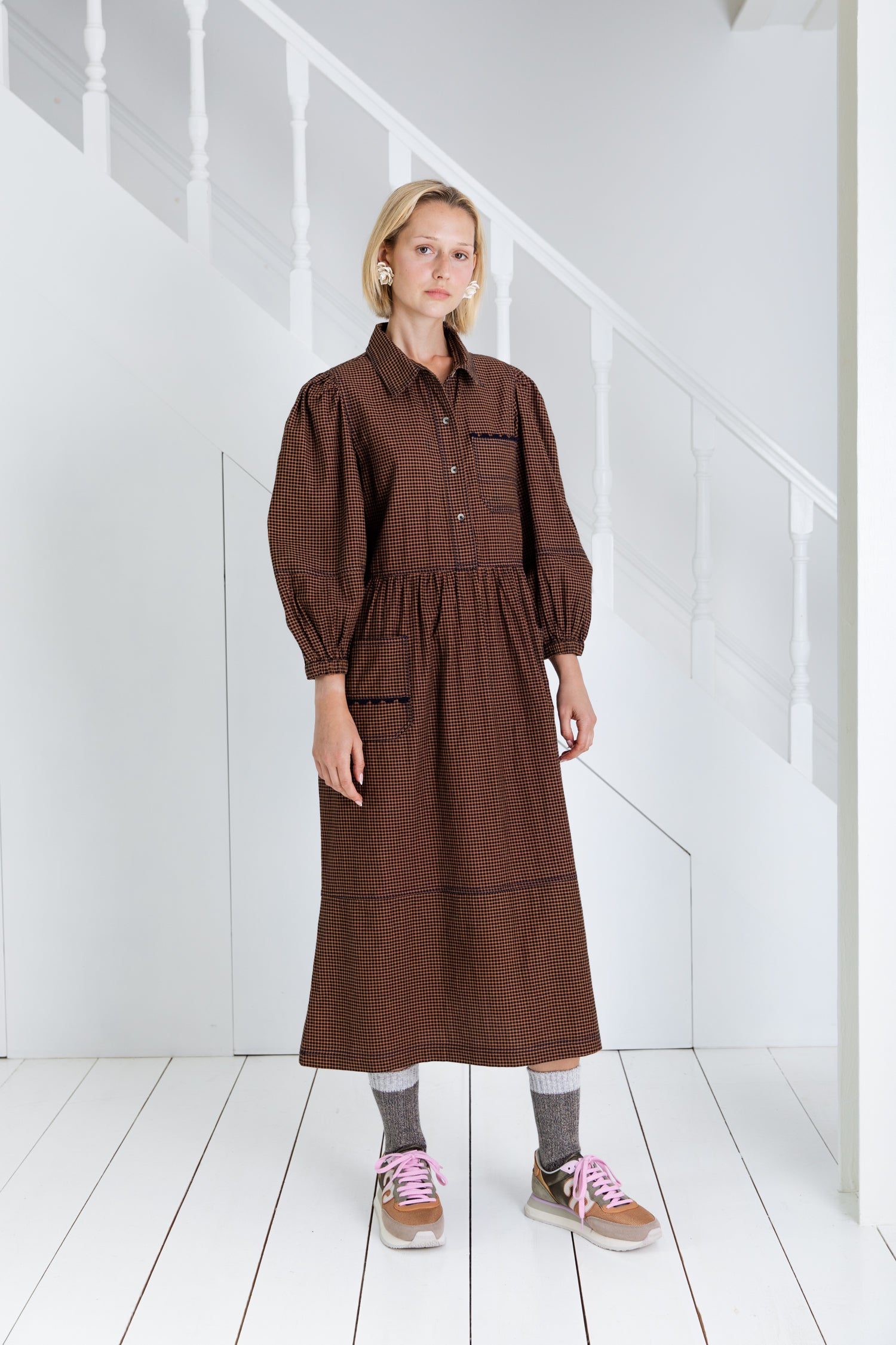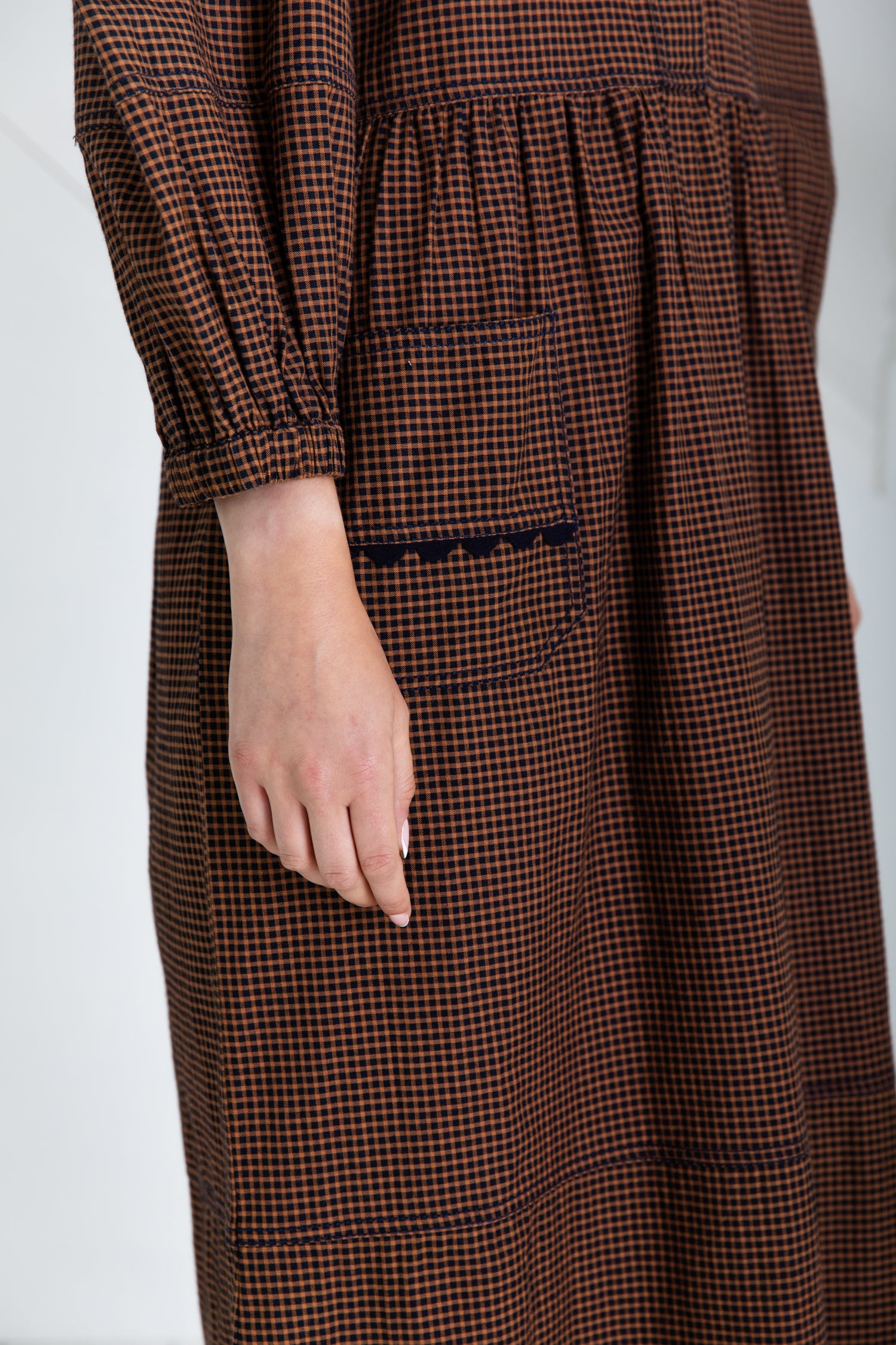 A versatile, relaxed fitting, utility inspired dress, with ric-rac detailing creating a feminine twist. The dress is made in an organic cotton yarn dyed mini gingham, which is garment washed for added softness and a more authentic feel.
