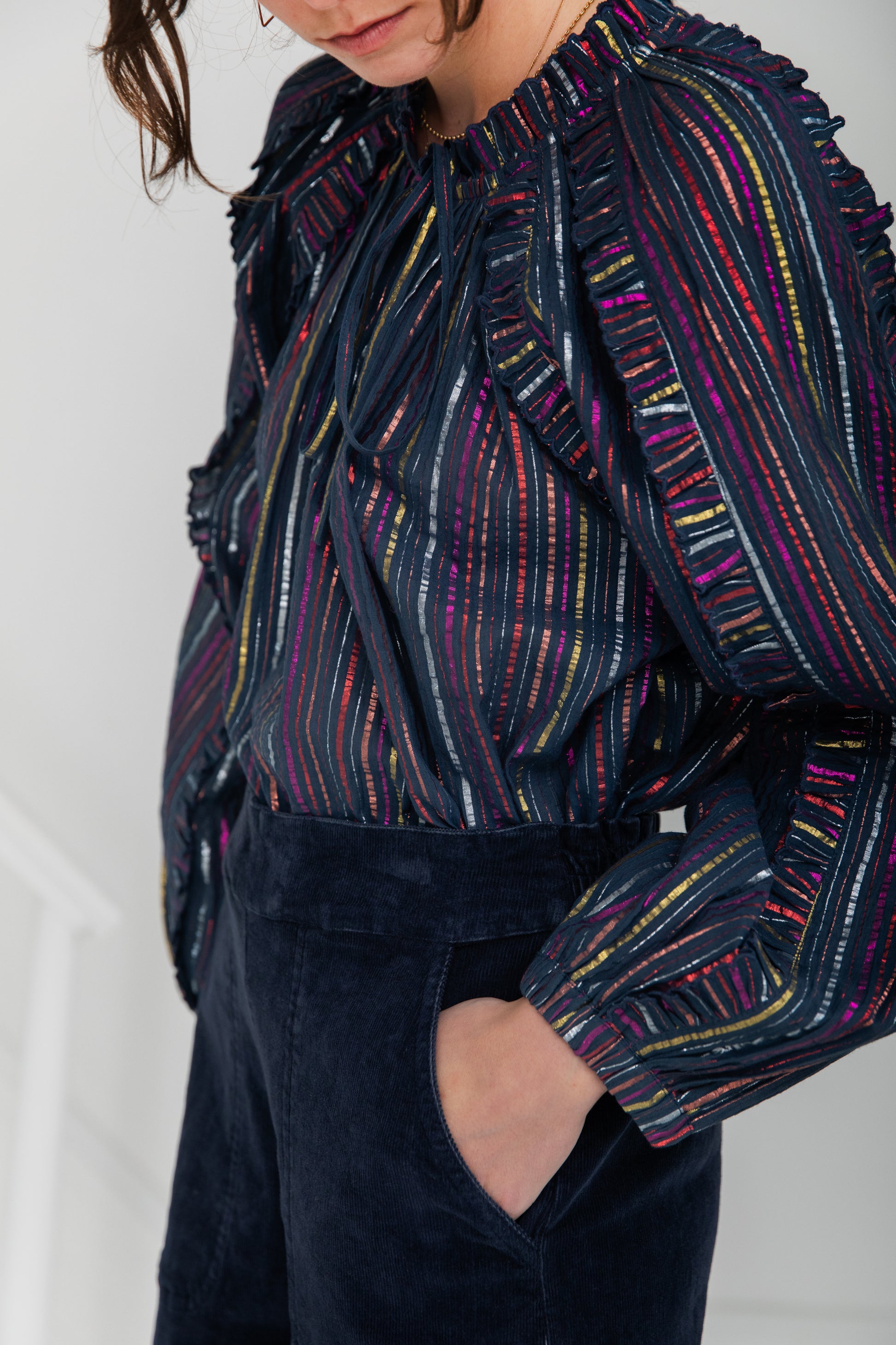 Loose + relaxed fitting, 3/4 length, wide leg, pull on organic cotton cord trouser with an elasticated back. Side seam pockets with stitch-through detail. Twin-needle stitching throughout.