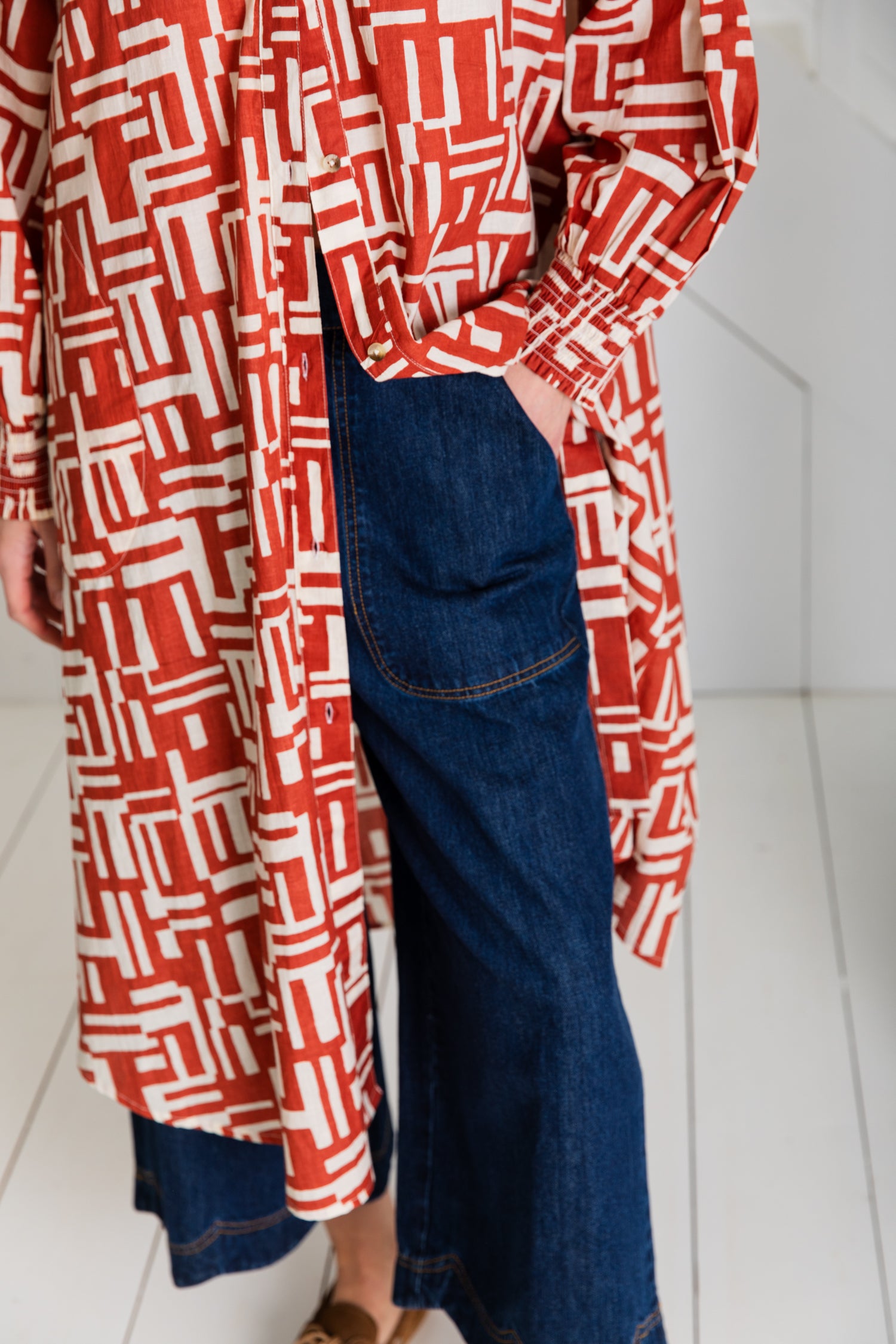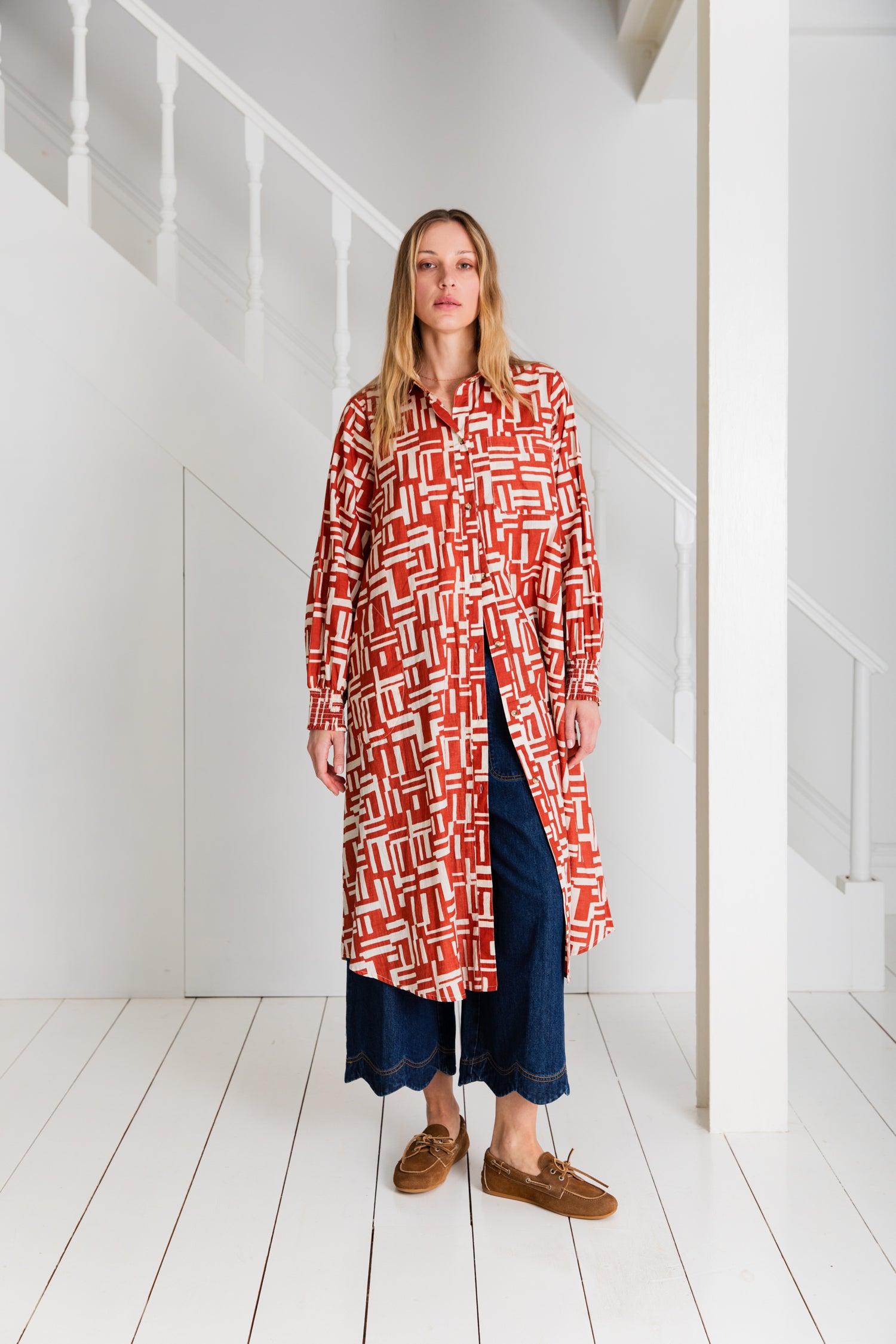 Wear it on its own as a breezy dress or over trousers for a modern layered look.