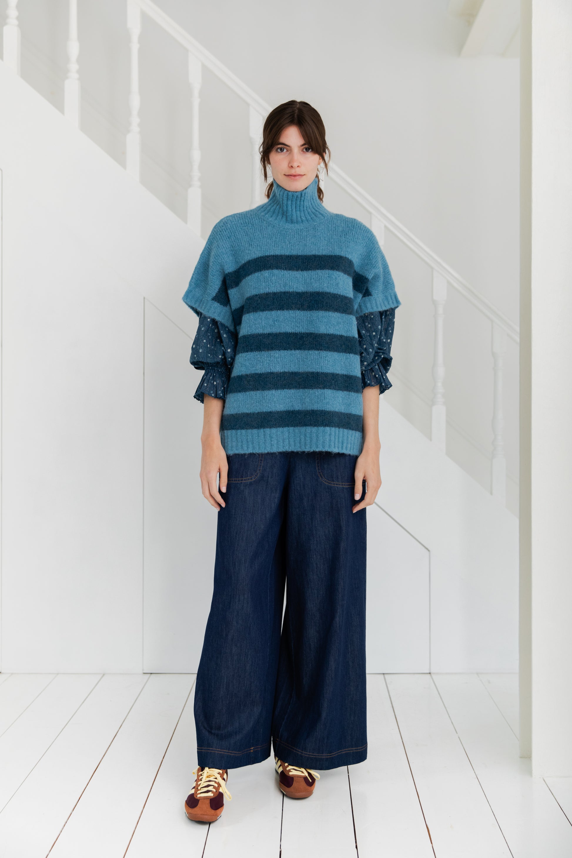 A loose fitting tank shape, in a soft + fluffy alpaca mix, with a high neck and a dropped shoulder.